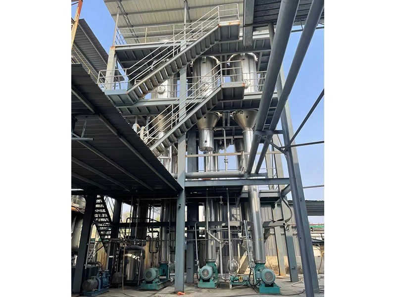 系统组成: 各效加热器、各效分离器(结晶器)、冷凝器(混合式或表面式)、热压泵、各效强制循环泵、各效料液输送泵、真空泵、冷凝水泵、操作平台、电器控制柜、液位自控系统及阀门管路等。